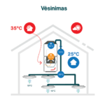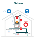 - Energijos taupymas – iki 96 % šilumos grąžos efektyvumas, mažesnės sąnaudos.